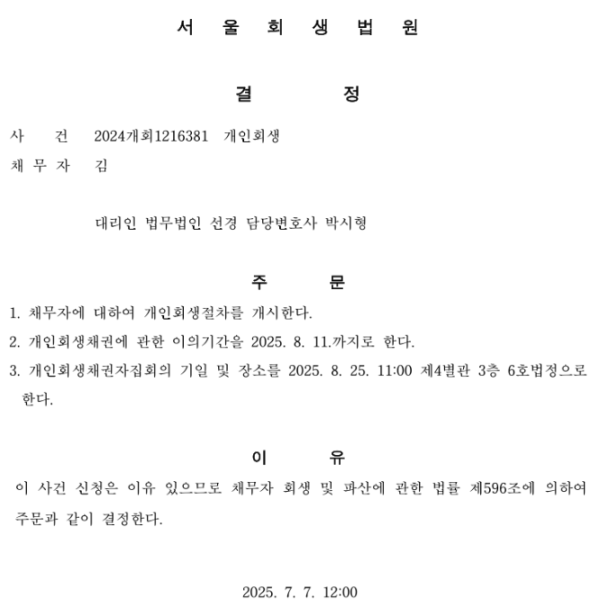 개인회생 개시결정