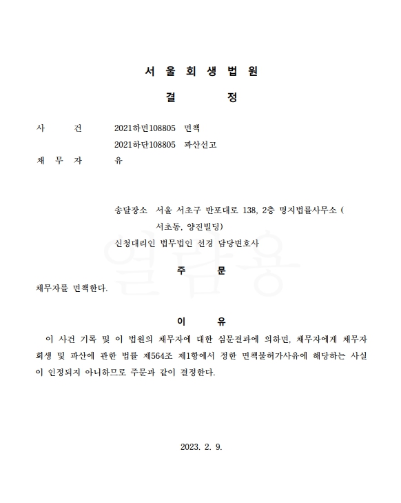 개인파산 면책결정