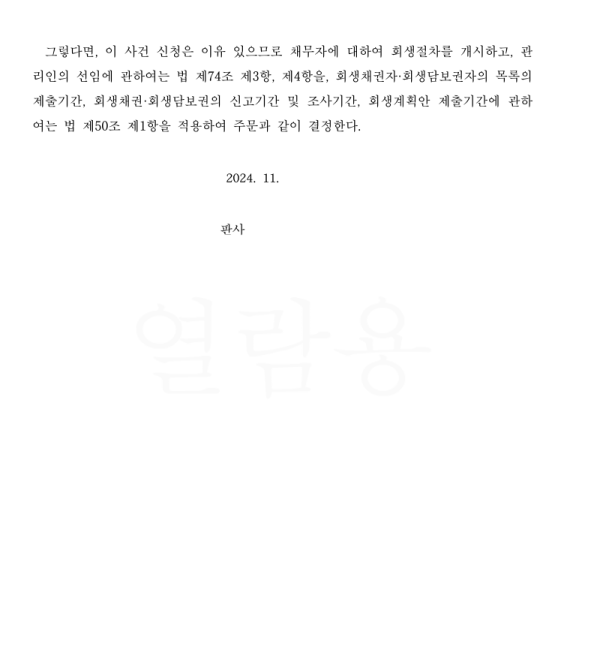 일반회생 개시결정