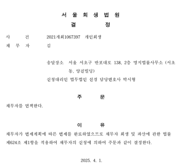 개인회생 면책결정