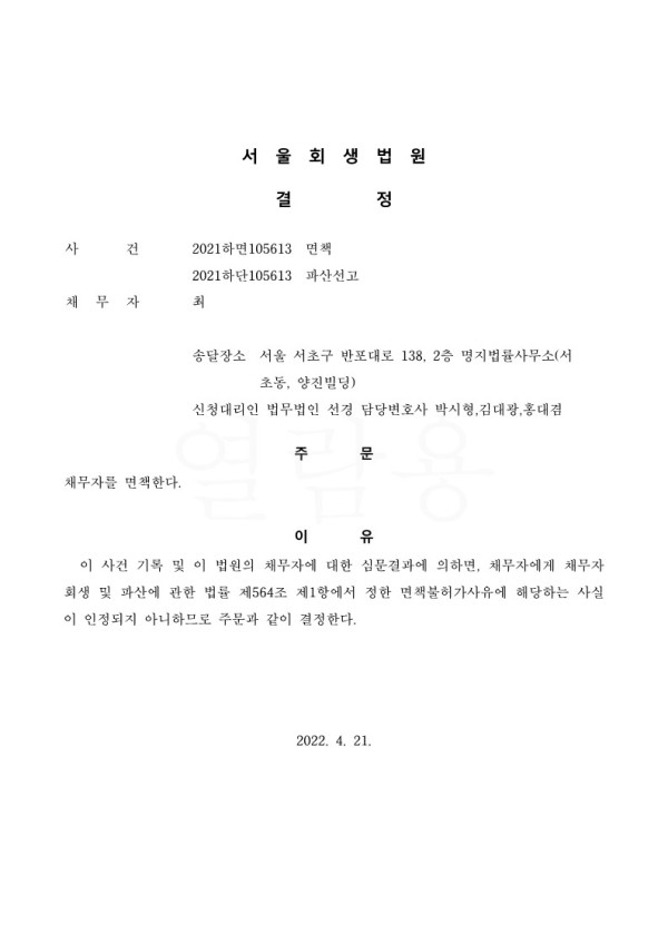 개인파산 면책결정