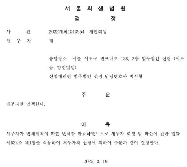 개인회생 면책결정