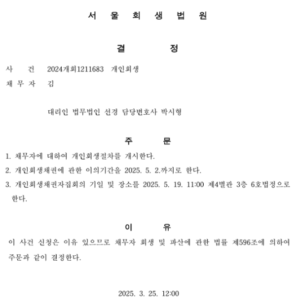 개인회생 개시결정