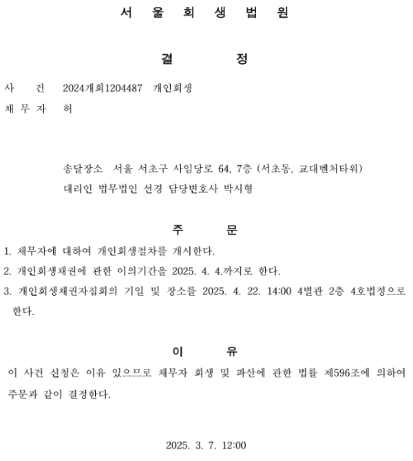 개인회생 개시결정