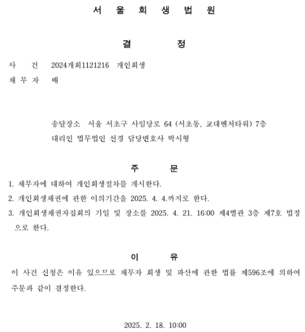 개인회생 개시결정