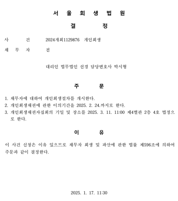 개인회생 개시결정