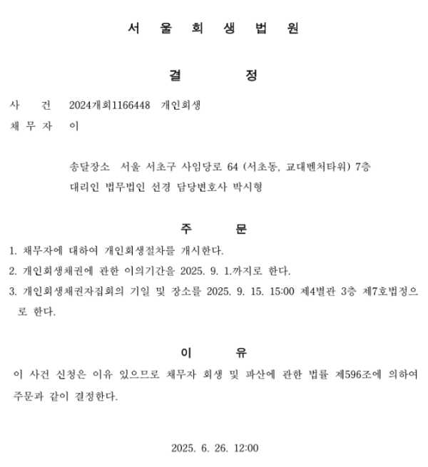 개인회생 개시결정