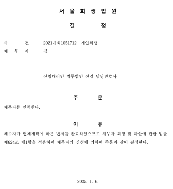 개인회생 면책결정
