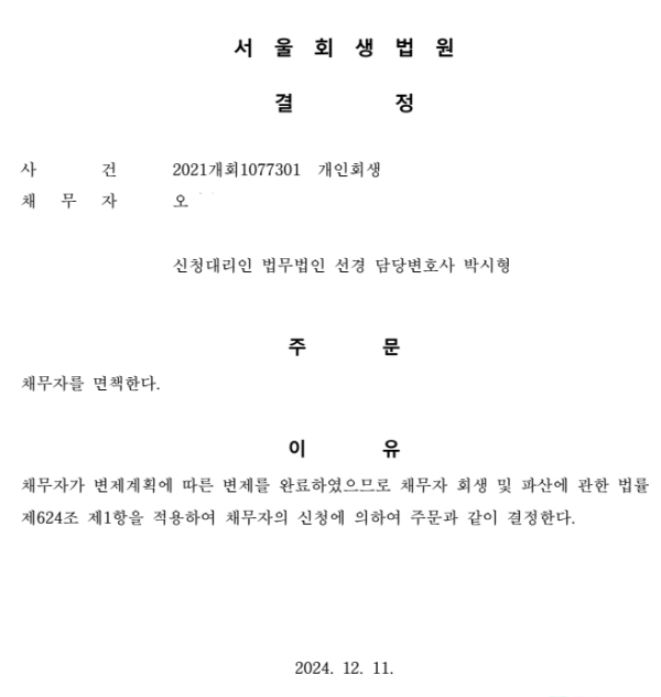 개인회생 면책결정