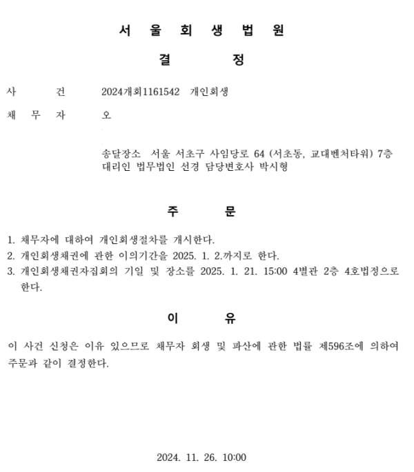 개인회생 개시결정