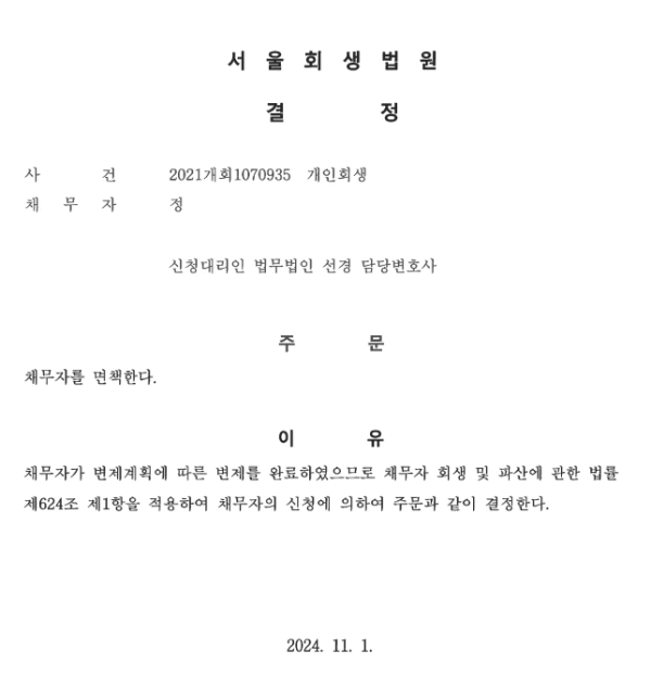 개인회생 면책결정