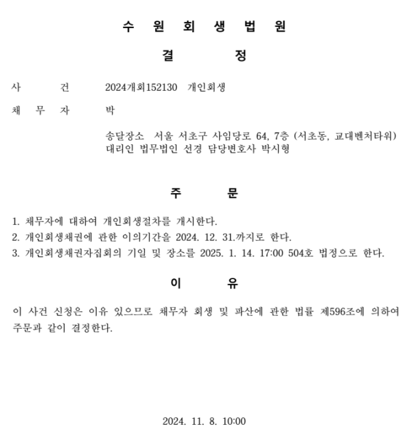 개인회생 개시결정