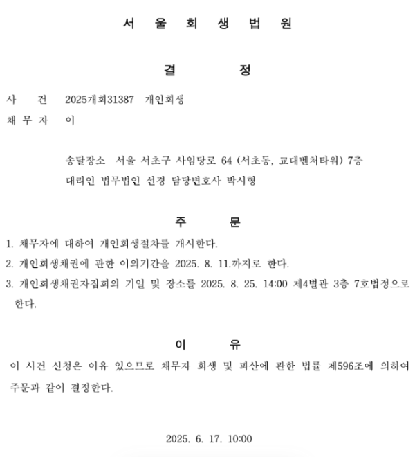 개인회생 개시결정