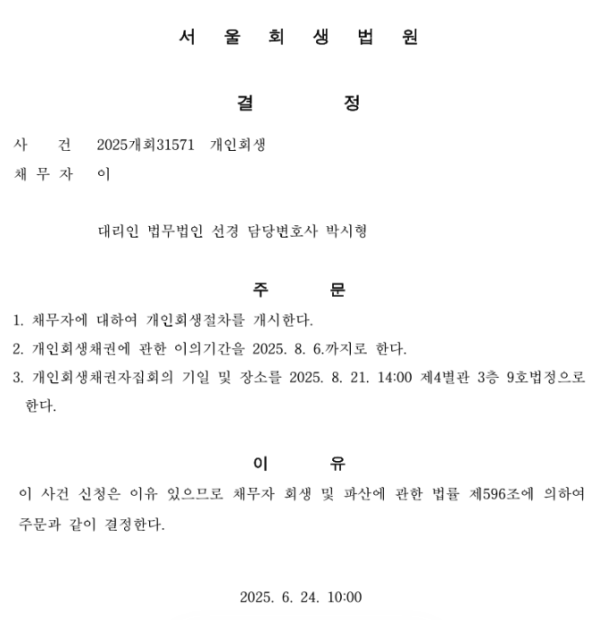 개인회생 개시결정