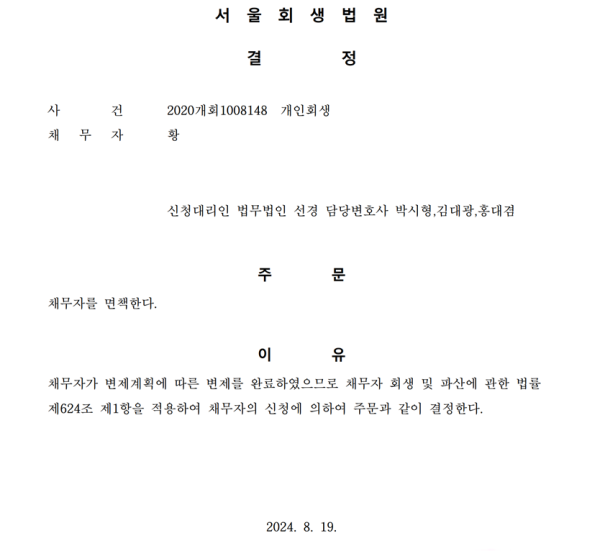개인회생 면책결정