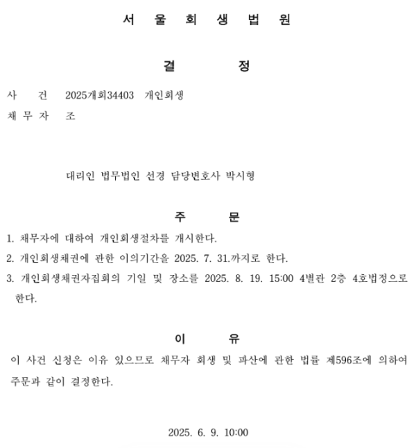 개인회생 개시결정