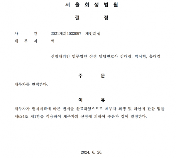 개인회생 면책결정
