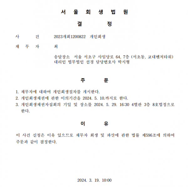 개인회생 개시결정