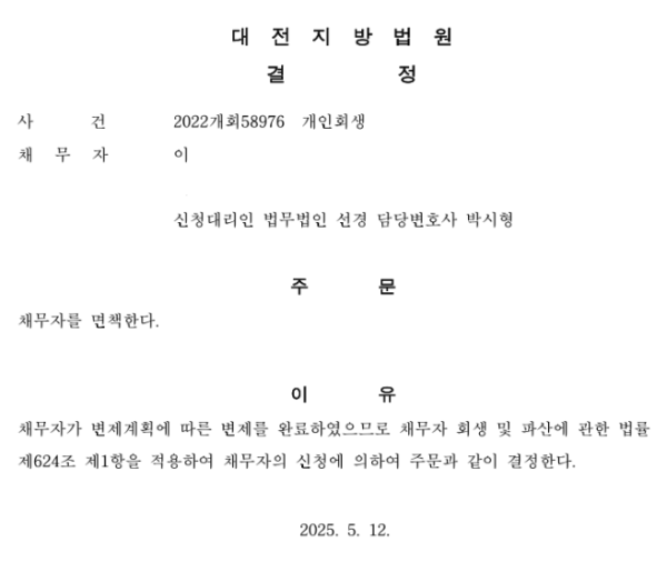 개인회생 면책결정