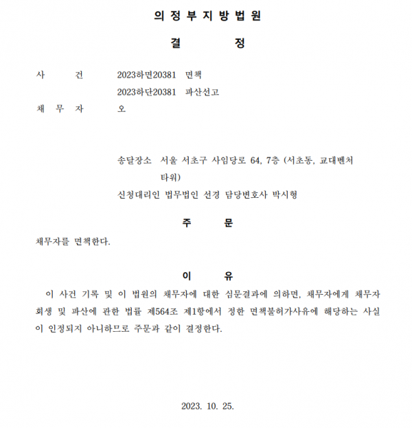 개인파산 면책결정