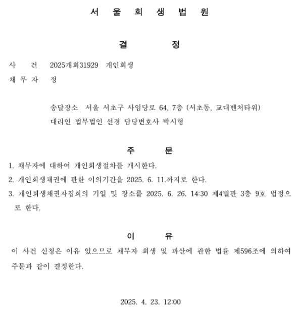 개인회생 개시결정
