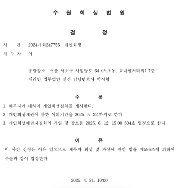 개인회생 개시결정