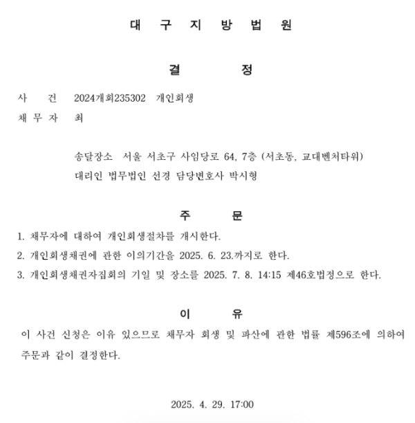 개인회생 개시결정