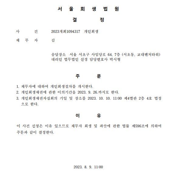 개인회생 개시결정