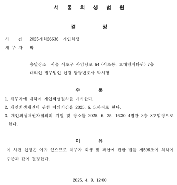 개인회생 개시결정