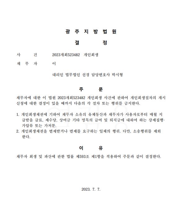 개인회생 금지결정
