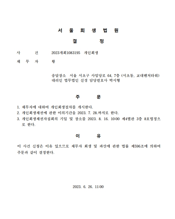 개인회생 개시결정