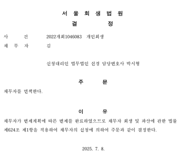 개인회생 면책결정