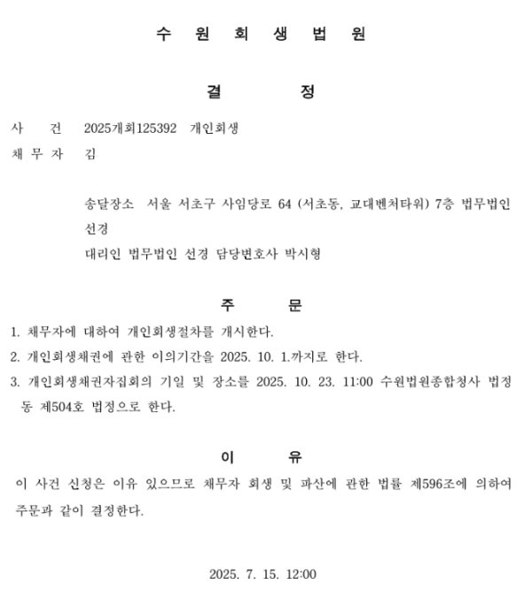 개인회생 개시결정