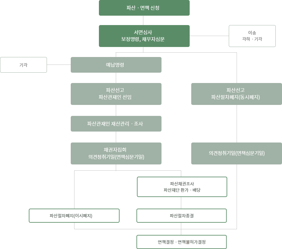 재정적 파탄에 처한 채무자가 법원을 통해 재산을 환가(현금화)하고 채권자에 대한 배당절차를 이행함으로써 잔여채무를 면책받고 신분이 복권되어 경제적 재기와 갱생의 기회를 부여받는 절차